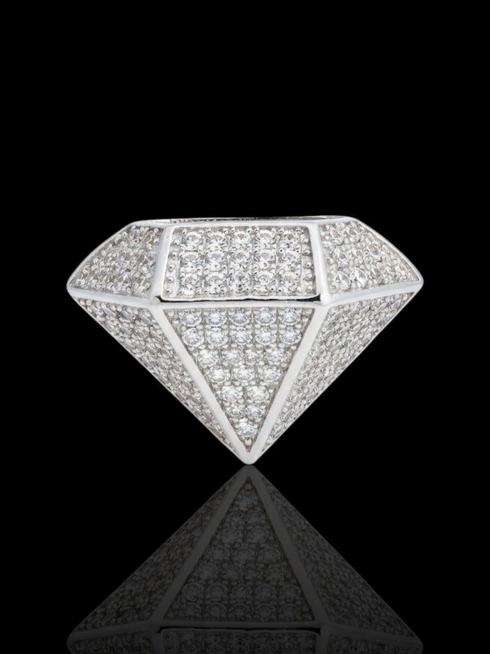 Men’s CZ Stone Silver Diamond Symbol Ring